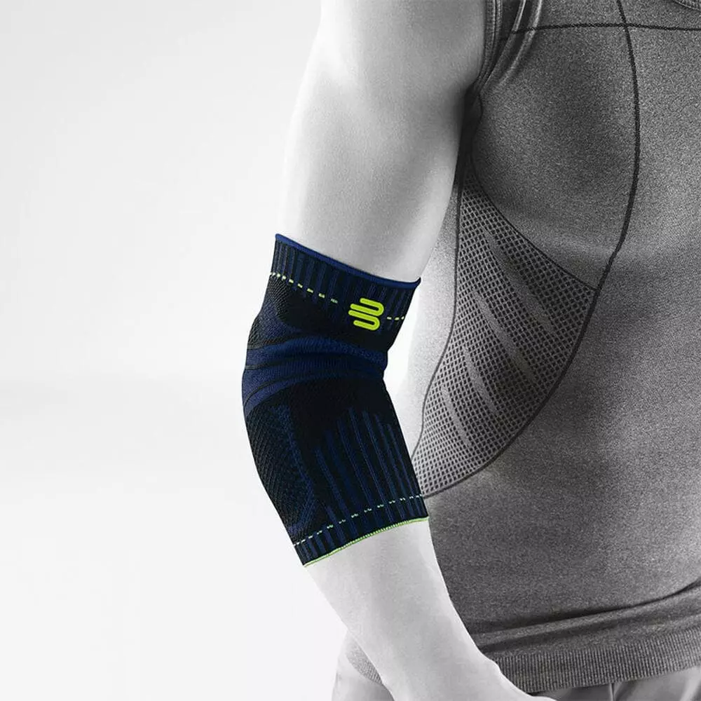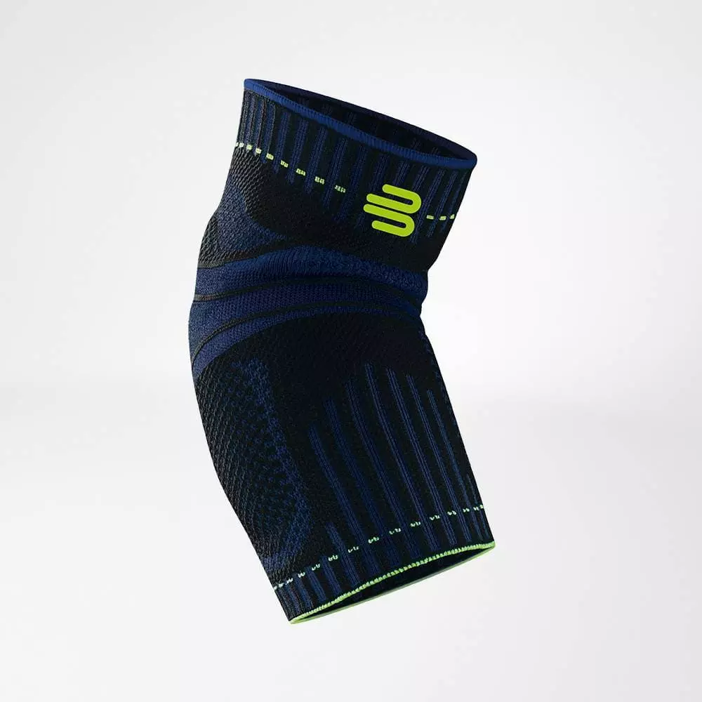 Bauerfeind Elbow Support enhances the movement of the elbow throughout long training and activities. It protects you from overloading and gives gentle and beneficial compression support to the elbow. Two anatomically contoured functional pads protect the inside and the outside of the elbow joint against the pressure peak. When you move your arm, the pads and the knitted fabric massage the connective tissue and muscles and stimulates circulation and metabolism. The knitted fabric of this support is similar to a fine net made if an airy mesh and consists of breathable and hard-wearing material.Â