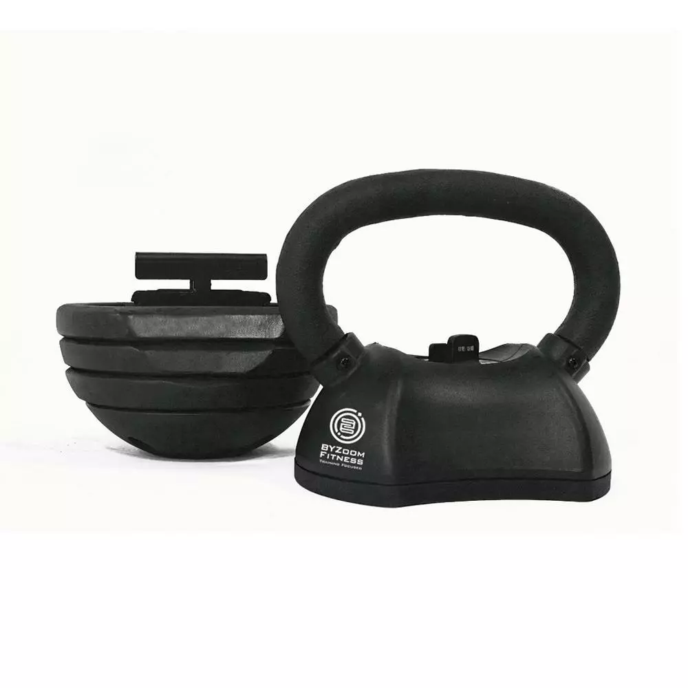Intensify any type of workout with the 30lb Adjustable Kettlebell from BYZoom Fitness. This 5-level adjustable kettlebell boasts a hassle-free lock system for adding and reducing weights – and an ergonomic design for arm comfort and an easy grip.Â