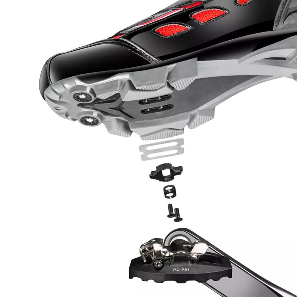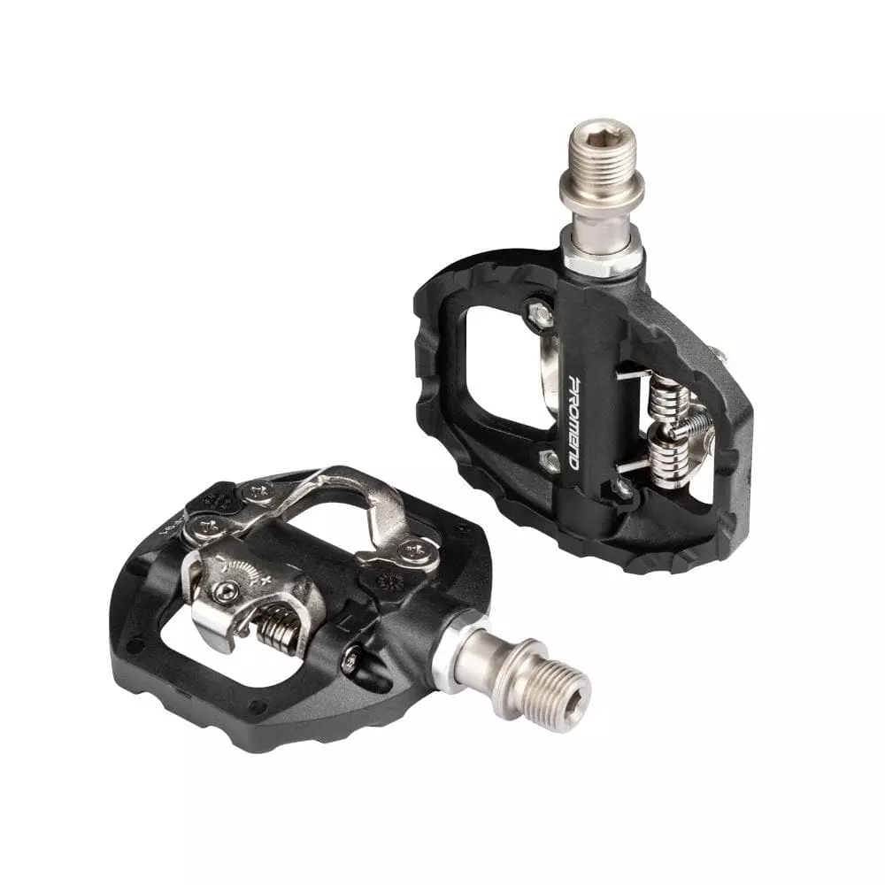 Improve your pedalling efficiency with Promend Dual Side Clipless Pedal. Built with an SPD system, it has a mechanism that locks it to a cleat screwed into the bottom side of the shoe so you can pedal with greater efficiency and stability.