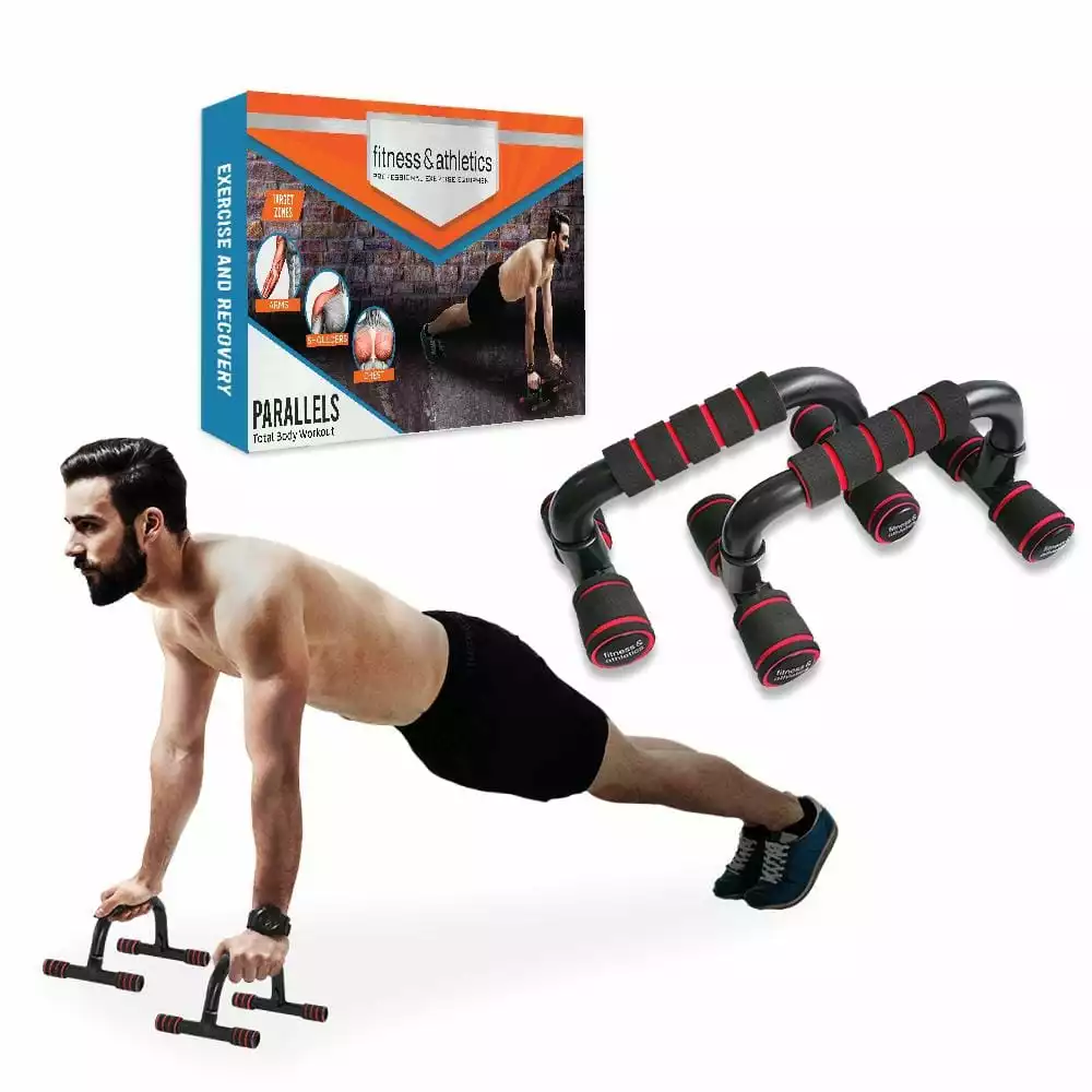 Perform a wide variety of exercises such as push-ups, tuck holds and dips as the Fitness & Athletics Parallels helps you build core strength and enhance your upper body. It targets your arms, shoulders and chest to achieve more toned upper body. Get a total body workout with Fitness & Athletics Parallels.