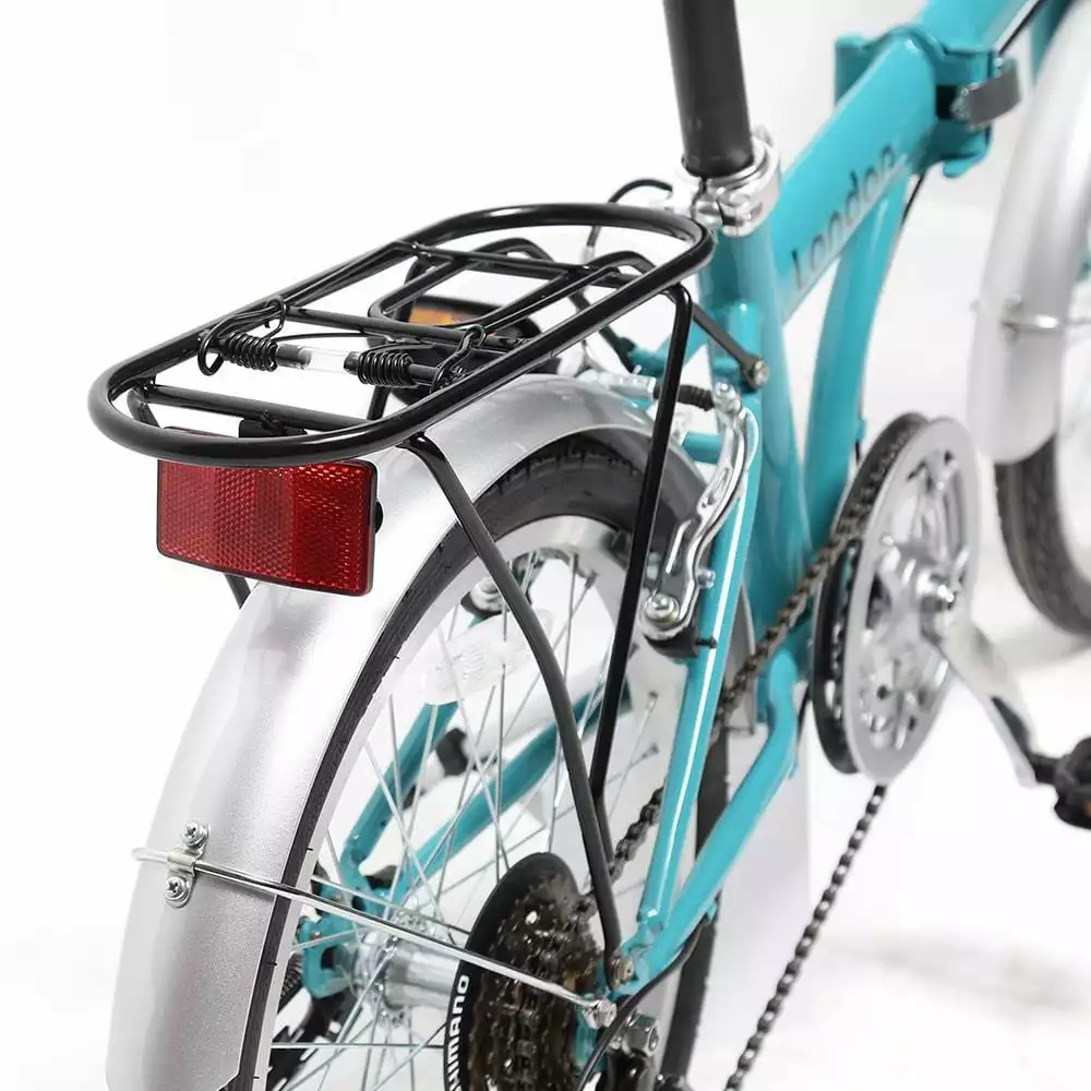 Foldy London is built from a sturdy high tensile steel frame with a quick and easy folding mechanism that aids in its folding and storage. It has a handlebar stem that allows it to be stowed away neatly in a compact size. This folding bike is fully equipped with quality six speed indexed Shimano gear system, front and rear responsive V-type brakes, and lightweight 20 inches alloy rims that guarantee a smooth and comfortable ride. Foldy London also comes with matching mudguards and a convenient rear luggage rack for quick trips to the shops. It is adjustable for all sizes of riders thanks to the super long seat post and the hi-rise handlebar stem.