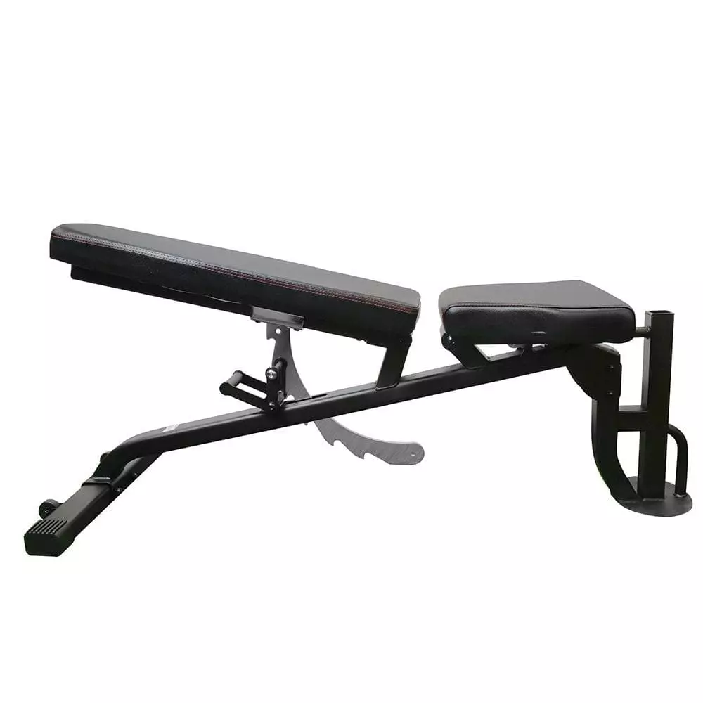 - Multiple position bench (flat, incline, and decline) for a full body workout