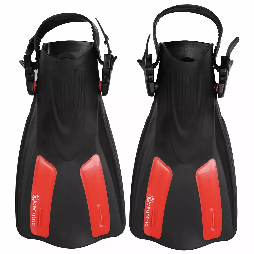 Kick-off your underwater adventure with Oceantric Snorkeling Fins 2.0! Move faster and conserve more energy with the short, lightweight blade, and adjustable open heel. The sleek features of the snorkel fins add power to each kick, perfect for recreational swimming use.Â