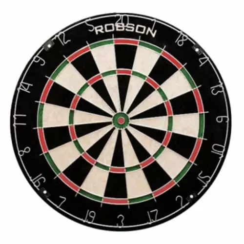 A fun action dart game in the comfort of your own home. Robson Dartboard is crafted with high quality non-reflective wires, movable number ring and staple free bullseye to prevent bounce outs.