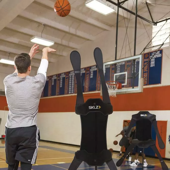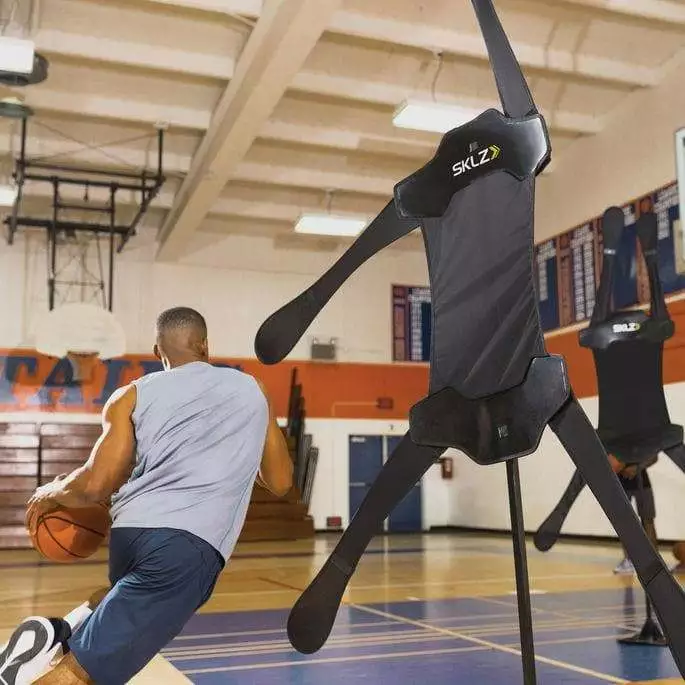 SKLZ D-Man Pro Defensive Mannequin is a basketball trainer that mimics a real defender on the court. The basketball dummy has fully adjustable arms, legs, and height, and can be used in both solo and team practice. Replace your cones with a mannequin to avoid tripping while practicing your shooting, dribbling, passing, and attacking drills.