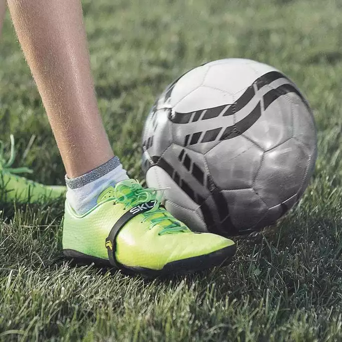 SKLZ Soccer Kick Coach is designed to fit cleats of most sizes from youth to adults. The trainer device attaches comfortably to the laces, instep, or outside of a player’s foot for more precise feedback.
