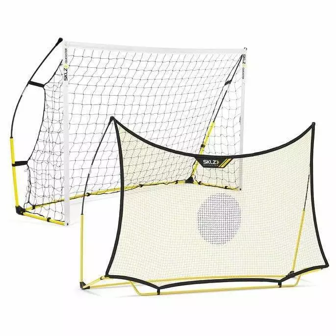 Practice footwork and precision skills using the middle goal mark on the rebounder net on the SKLZ Quickster Combo System. This helps to efficiently train and improve muscle memory without having to run after the ball. - EASY ASSEMBLY