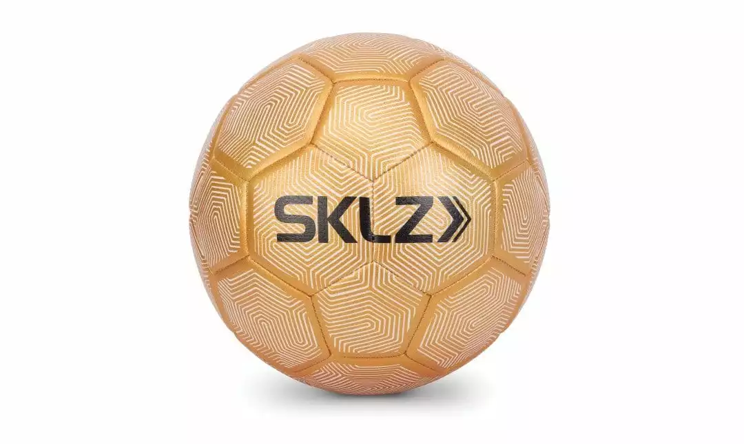 SKLZ Golden Touch Weighted Soccer Ball is a great coaching tool for soccer beginners. It mimics the bounce, roll and reaction of a match ball, and weighs the same as the regulation-sized ball.