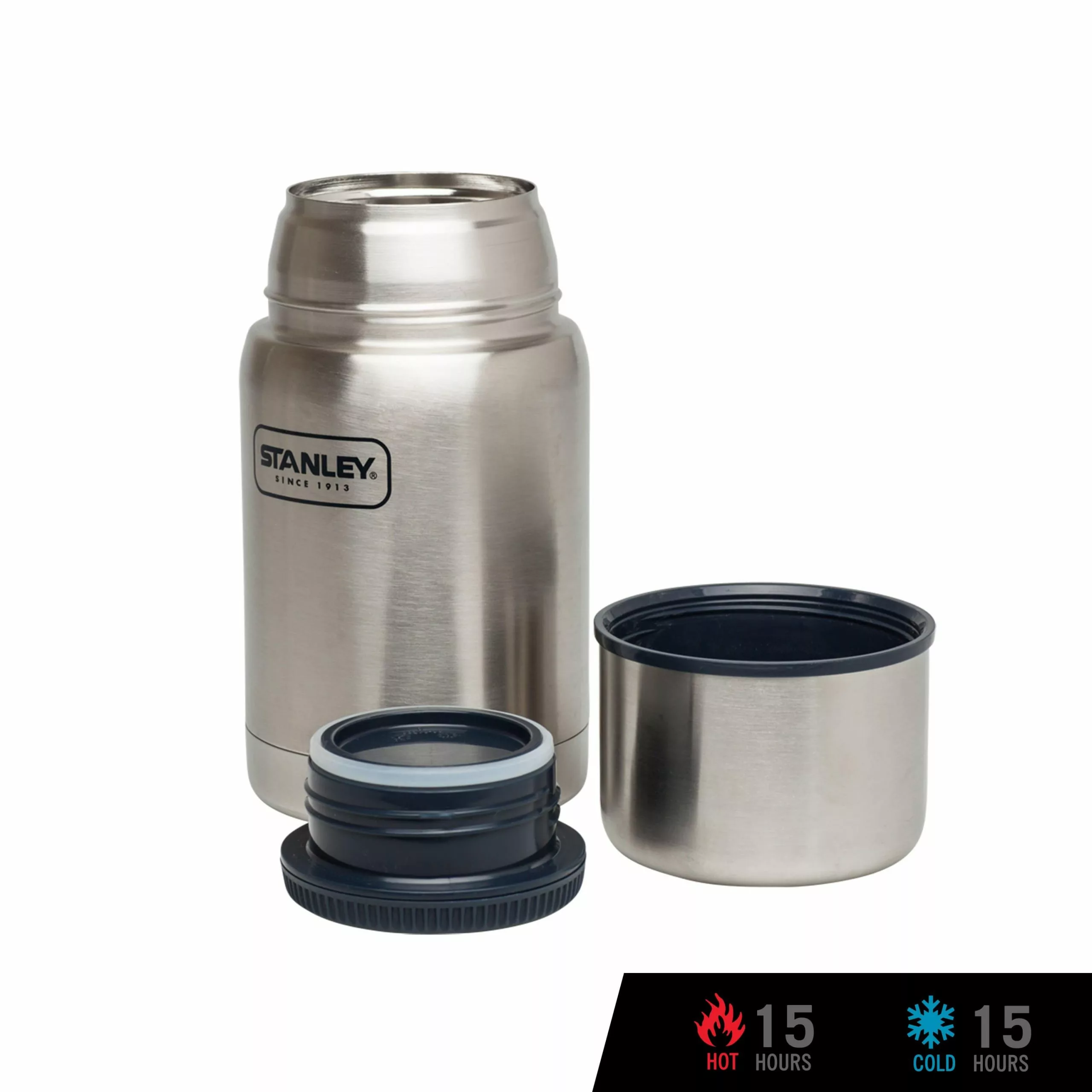 - DOUBLE WALL VACUUM INSULATION. Enjoy steaming hot meals on your break with this food jar. Stanley Adventure Vacuum Food Jar keeps food hot or cold for 15 hours, making it the perfect food thermos for the office or for school. Its double wall vacuum insulation does not only keep your food’s temperature, it also keeps your food container from sweating, accumulating moisture, and getting its exterior hot to touch.