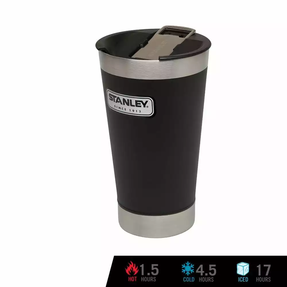 - DOUBLE WALL VACUUM INSULATION. Pour your favorite beer in this insulated drinking cup and enjoy it ice cold for 17 hours. This metal drinking glass has double wall vacuum insulation which keeps your drinks hot for 1.5 hours, cold for 4.5 hours, and iced for 17 hours.