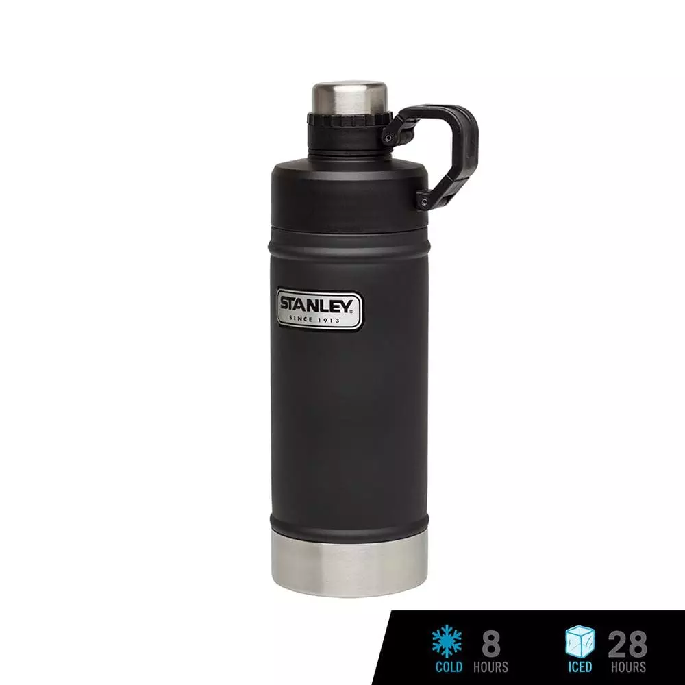 - DOUBLE WALL VACUUM INSULATION. Stanley Classic Vacuum Water Bottle keeps your drinks cold for 8 hours and iced for 28 hours.