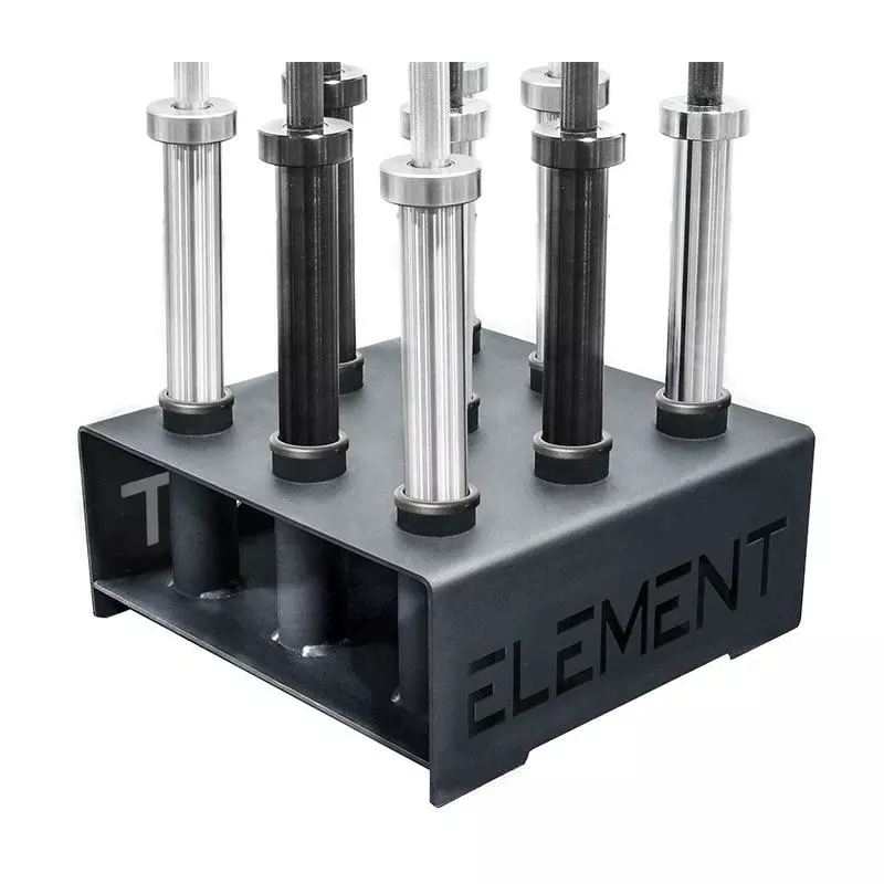 Element Fitness Barbell Holder is a 9 bar holder. Unlike any other barbell rack, the Element Fitness Barbell Holder is made from 7-gauge steel that holds the barbell vertically, which makes it organize and efficient for the training space. It holds and protects your precious barbells from scratch and any damage.Â